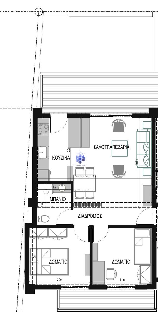 - 2 υπνοδωμάτια με εντοιχισμένες ντουλάπες